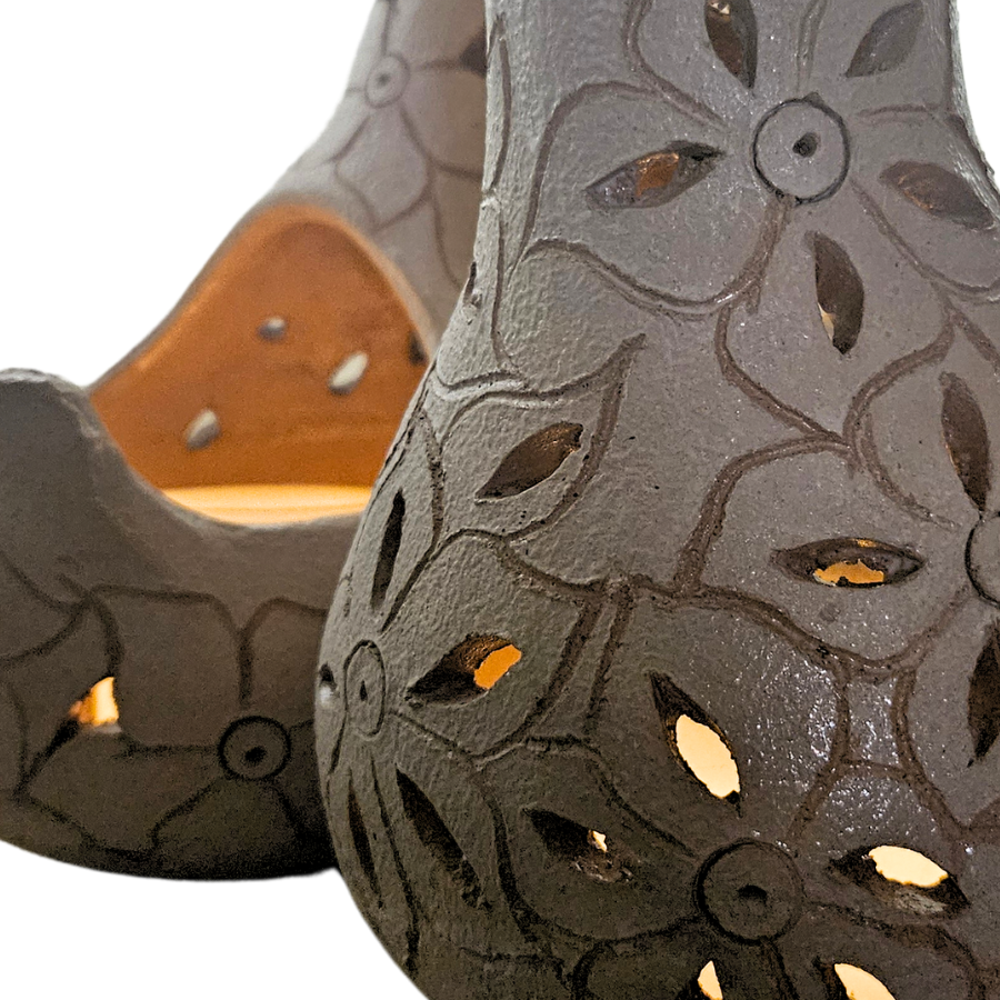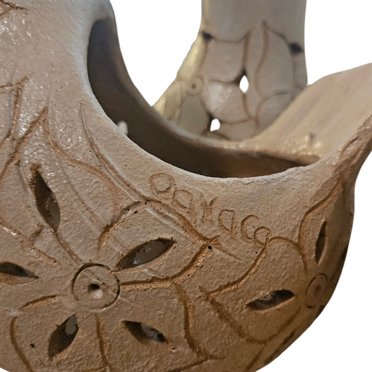 Trio of Vintage Mexican Pottery Bird Luminaria