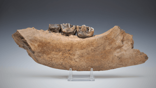 Fossilized Woolly Rhinoceros Jawbone w/ Rooted Teeth